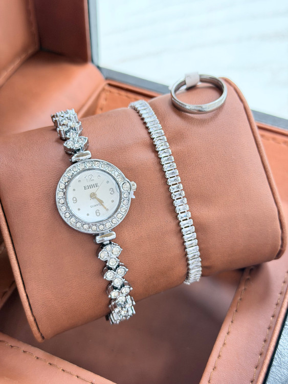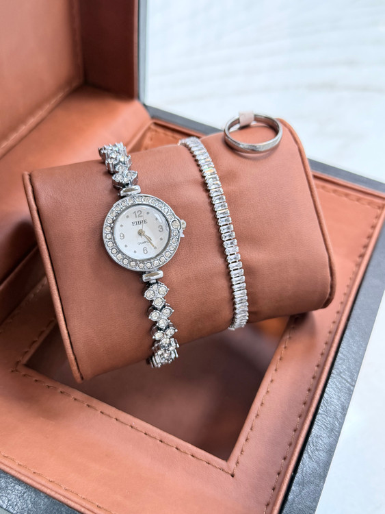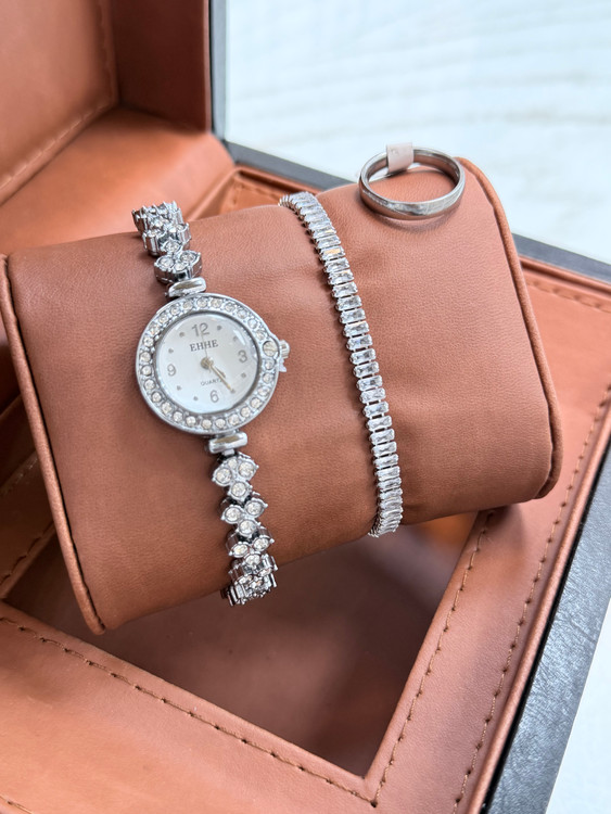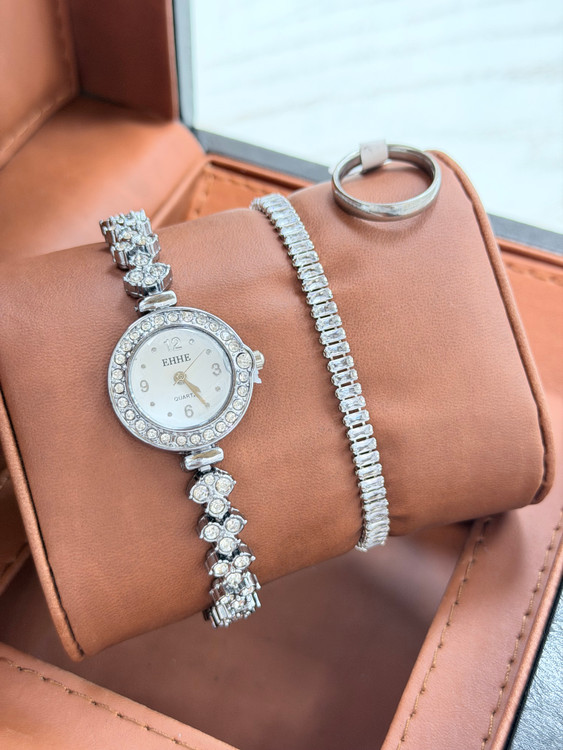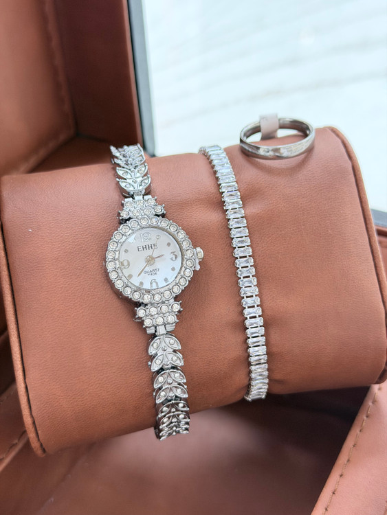زنانه برند شرکتی EHHE به همراه دسبند تنیسی نگین دار و حلقه ساده