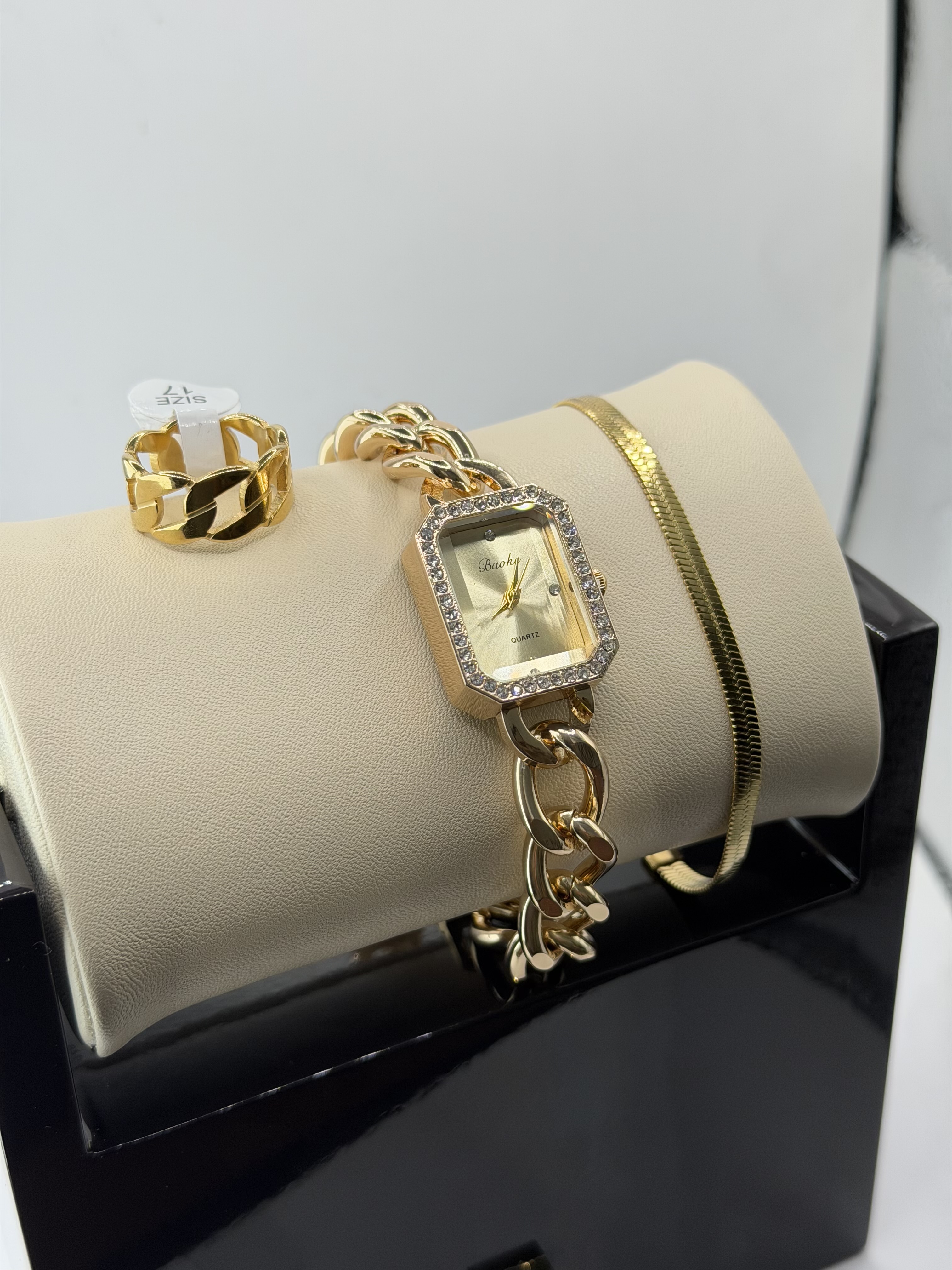 زنانه طرح دستبندی کارتیه برند شرکتی Baoke به همراه دسبند ماری طلایی و حلقه کارتیه طلایی